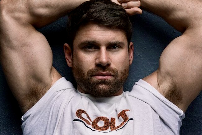 Ah, now you’re wondering about Beau Butler. But no, he’s like most of us, and gets knitted eyebrows only by working for them. Since he’s now a pornstar, and was a male model before that, there are tons of photographic evidence. Just one posed face shot (and you get the huge biceps for free):