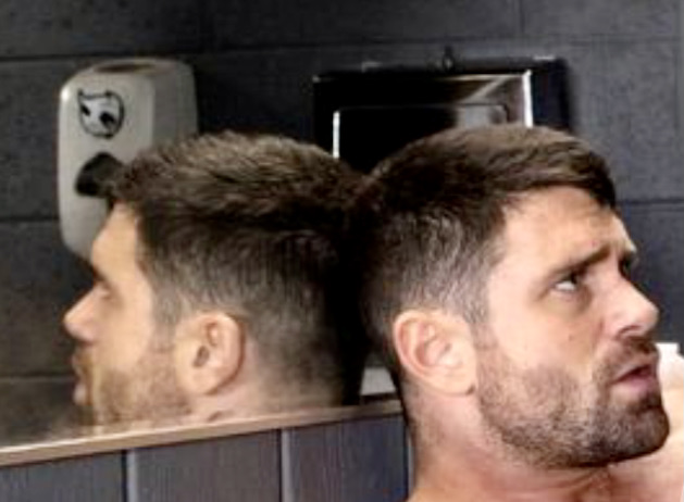 Bonus: Beau Butler displays himself. A just barely WordPressable performance showing off his muscle-hunk body right down to the base of his 8ʺ cock (clearly outlined in his pants):