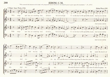 The text is by Isaac Watts 1719 (Watts (1674-1748) was an extraordinarily prolific English writer of hymn texts), the tune by Elisha West 1797 (West was a Vermont composer of sacred music, born in 1752 in Maine, died ca. 1808 also in Maine; very little is known about him).