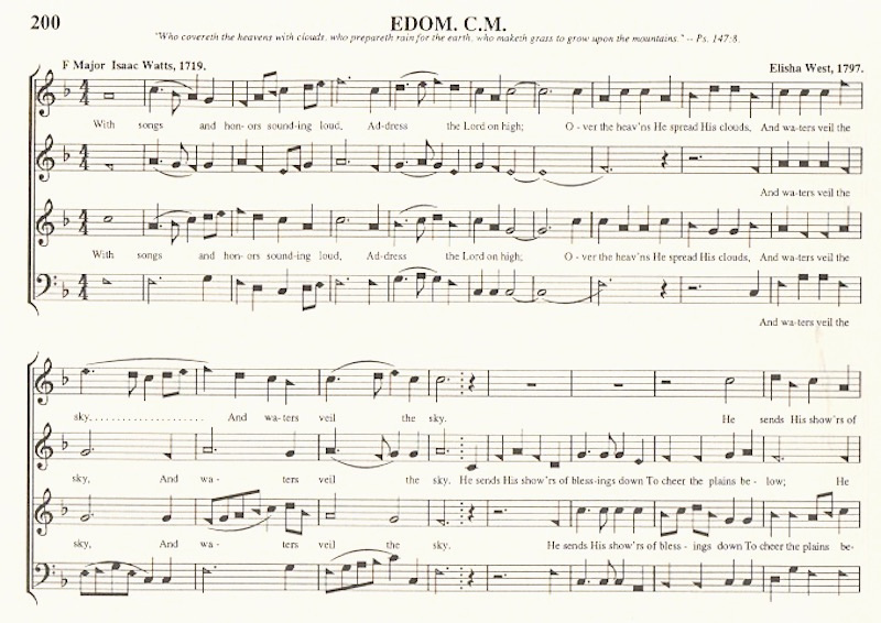 The text is by Isaac Watts 1719 (Watts (1674-1748) was an extraordinarily prolific English writer of hymn texts), the tune by Elisha West 1797 (West was a Vermont composer of sacred music, born in 1752 in Maine, died ca. 1808 also in Maine; very little is known about him).
