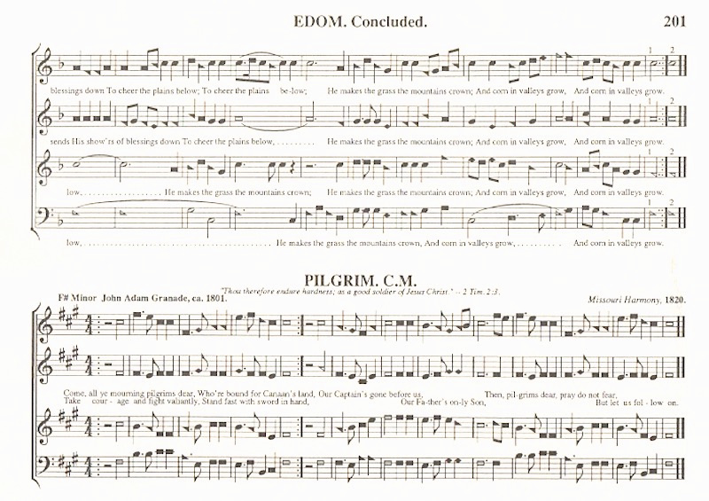 SH200 Edom. Having wandered from kink / leather gear to Jacob and Esau, I have to admit that mention of Edom instantly brought me to shapenote singing, and #200 in the Denson Sacred Harp. An old favorite, with a joyous agricultural subtheme: