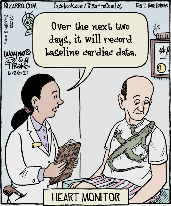 Earlier on this blog, in my 9/10/19 posting “Him wear saurian monitor”, a Scott Hilburn cartoon in whch a monitor lizard serves as an ankle monitor.