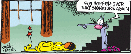 Yes, I’m not dead yet, but I’ve had grave difficulties in getting even a tiny posting together. So here’s today’s (7/23) Mother Goose and Grimm cartoon, from the meta-cartoon world: