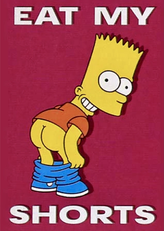 Finally, on its appearance in The Simpsons. From the Simpsons wiki on “Eat my shorts!”: