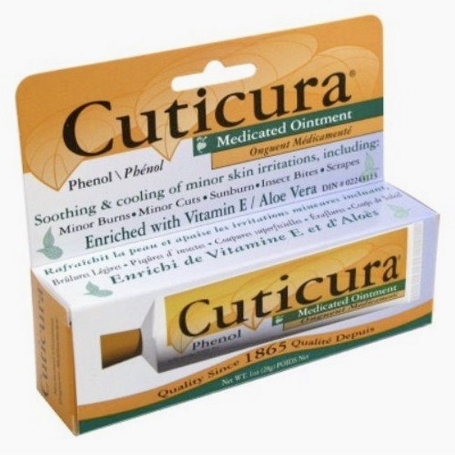 Ingredients. The early tins were quite reticent about listing contents. Over the years, the contents list expanded to become quite informative, no doubt spurred on by federal agencies in the US; and then there were occasional changes. But, basically, Cuticura ointment was — and still is — an omnium gatherum of substances reputed to be of aid in treating the skin, a kind of compendium of dermatological medicaments. See the list in (2), and now this one from a modern tube, with each ingredient identified by its intended function: