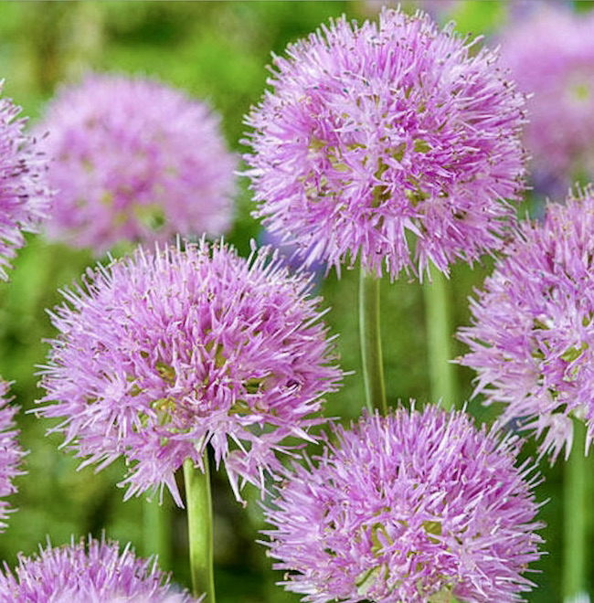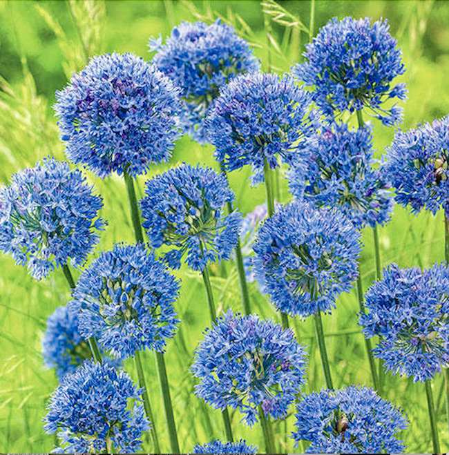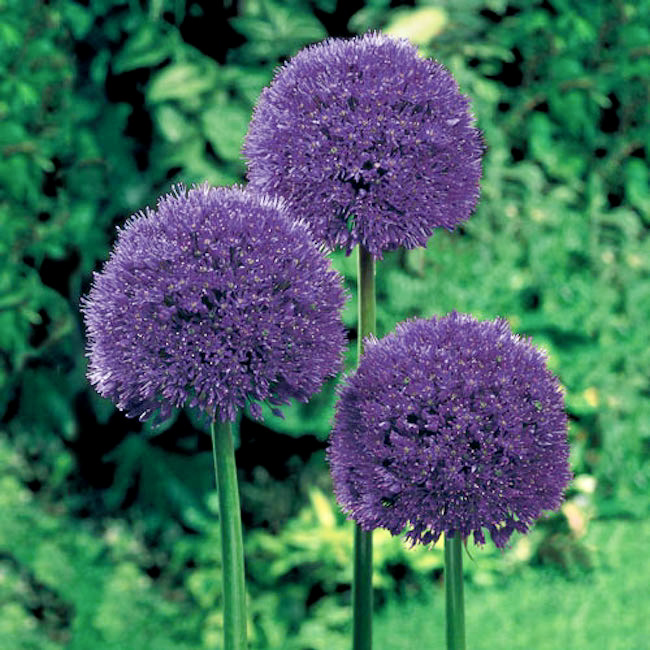 … The species is prized by gardeners because of its striking floral display. The spherical “head” (technically an umbel) is borne on a long scape, up to 50 cm in height, usually in July. It can contain hundreds of deep purple flowers.