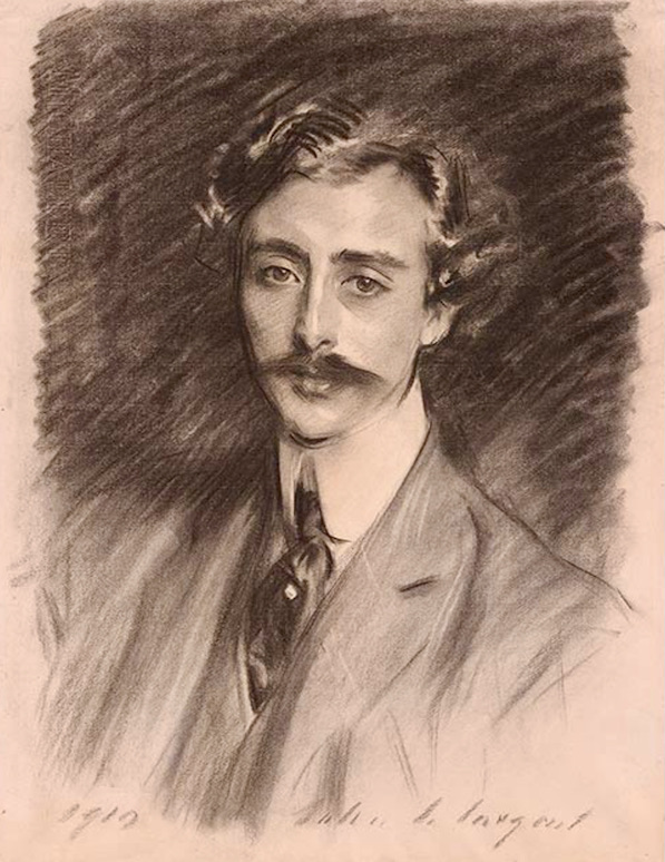 Seven portraits of men (from 1875 through 1910) by John Singer Sargent, evoking character and state of mind, or celebrating male beauty, or both. Spurred by the appearance on Pinterest of this extraordinary charcoal sketch (from 1900-1910) of the young Italian man Olimpio Fusco (with his address on it!):
