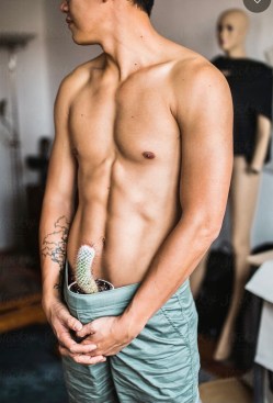 There are photos of naked men standing strategically behind a plant, or holding a plant in front of their crotch, but I haven’t found any good ones. The closest I’ve found is something rather different: a cactus used as a stand-in for an erect penis: