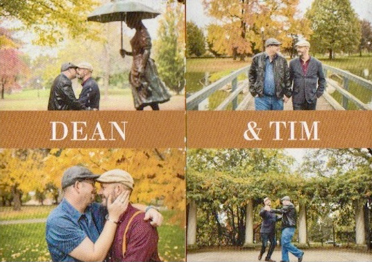 Dean’s dad Denny was there to welcome Tim into his family with enthusiasm. (I recall my own dad’s great pleasure at gaining my man Jacques as a second son.) Dean’s mother Peg died in 2018, but I’m sure her clear-minded energetic spirit suffused the event. (Once the lion of the local PFLAG, Peg joined me for several years in carrying the OSU banner in the Columbus Gay Pride Parade.)