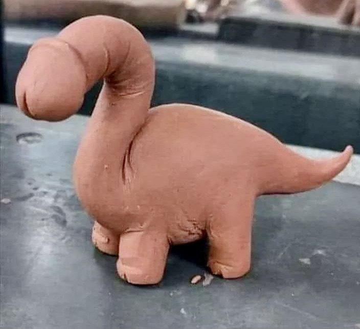 (#2) The adorable herbivorous Phallosaurus, clearly a phallus x Apatosaurus (aka Brontosaurus), molded from a clay-like modeling material