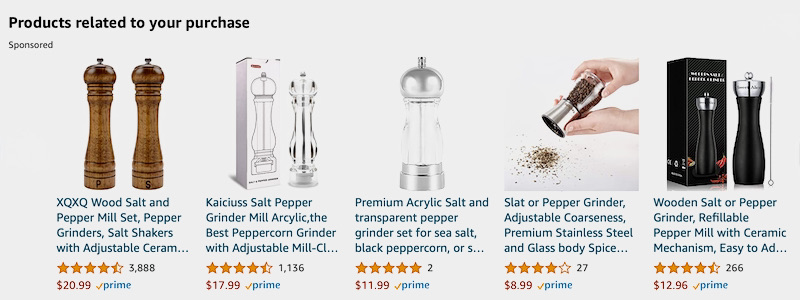 Then, Amazon being what it is, I immediately got offers of products related to my purchase: an assemblage of salt and pepper grinders. I am baffled, utterly baffled.