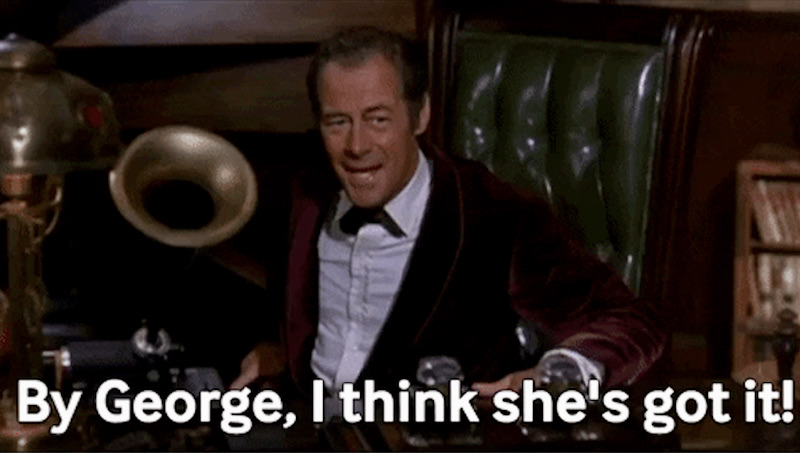 Tying it together. Rex Harrison in the 1964 film of Lerner & Loewe’s musical My Fair Lady (first performed on Broadway in 1956), based on GBS’s play Pygmalion (from 1913):