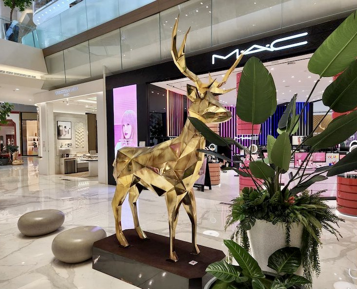 (#3) One item of public art in the complex; Ry calls it Golden Bambi (now that is showy)