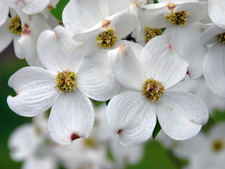 A Christian legend of unknown origin proclaims that the cross used to crucify Jesus was constructed of dogwood. As the story goes, during the time of Jesus, the dogwood was larger and stronger than it is today and was the largest tree in the area of Jerusalem. After his crucifixion, Jesus changed the plant to its current form: he shortened it and twisted its branches to assure an end to its use for the construction of crosses. He also transformed its inflorescence into a representation of the crucifixion itself, with the four white bracts cross-shaped representing the four corners of the cross, each bearing a rusty indentation as of a nail, the red stamens of the flower representing Jesus’ crown of thorns, and the clustered red fruit representing his blood.