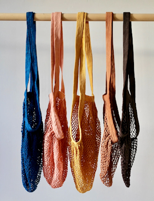 Mesh shopping bags in attractive natural colors (and several sizes). Which sacophiles like me will be inclined to see as resembling genital pouches. Delightful, sweet genital pouches.