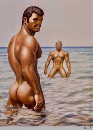 I must confess that I have a đ đ đ posting for 6/1 that looks at this summer-month stuff, still not finished and polished after about 30 hours of work; I am overwhelmed by life. As a place holder, vividly illustrating June As Summer, the image (Hot Water) on the June page in the Tom of Finland 2022 calendar: