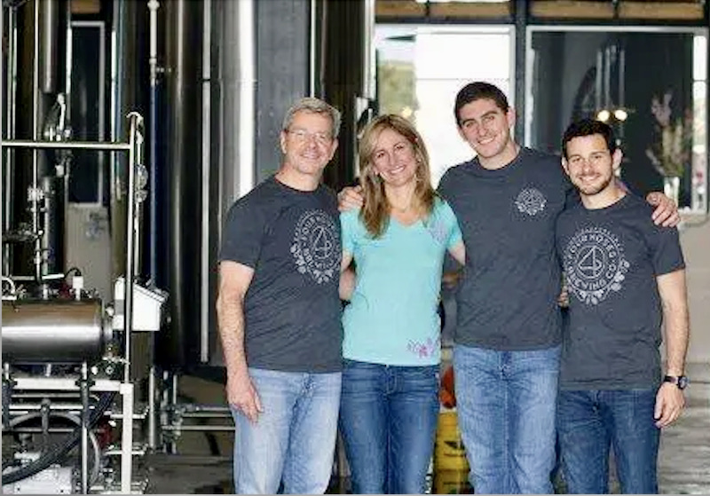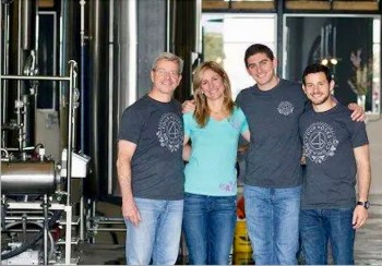(#2) The 4 Noses Brewing Co. family, headed by Tommy Bibliowicz, third from left. here; he’s at the brewery with his father, Natan; mother, Jessica; and brother David (2015 photo by 4 Noses Brewing)
