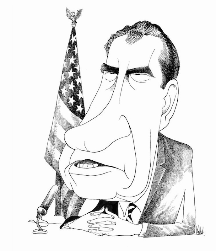 (#4) Richard Milhous Nixon (1913-1994), 37th President of the United States: caricature by Edmund Valtman, c1970.