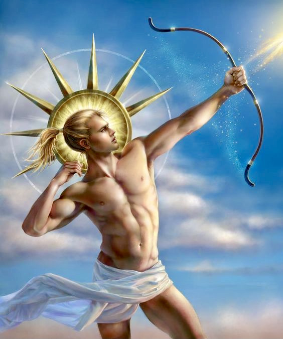 Musical Apollo. Apollo the god of the sun, music, poetry, archery, healing, and justice. With his musicality usually indicated by his lyre, and often by placing him in the company of the Muses: Clio (history), Urania (astronomy), Terpsichore (dance), Euterpe (music), Polyhymnia (hymns), Thalia (comedy), Melpomene (tragedy), Calliope (epic poetry), Erato (erotic poetry). Here we get the musicality, but not the rays of sunlight: