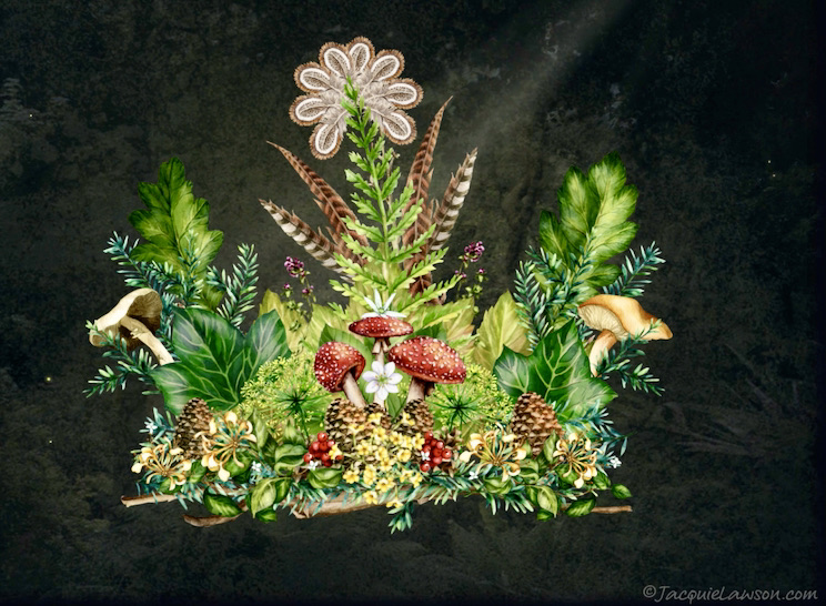 The fairy woodland bouquet. As I was taking this in, the fairies appeared. The playful, powerful ones, from Midsummer Night’s Dream. In yet another Jacquie Lawson electronic card, from Bonnie and Ed Campbell, wishing me happy birthday via a magical woodland bouquet that assembles itself before our eyes, plus the magical Mendelssohn music (MND condensed — whoosh — into a single minute!):