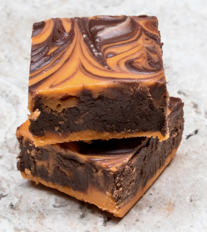 Description by Mike Z.: Our Vanilla Fudge is mixed with orange extract and swirled into Dark Chocolate Fudge