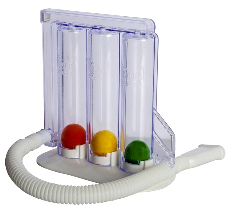 Breathing exercises. Lung function tests a while back showed reduced function in both inspiration and expiration, hence the prescription for an incentive spirometer:
