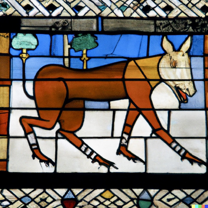 (#3) [BV caption:] “depiction in medieval stained glass of okapi in oxford”