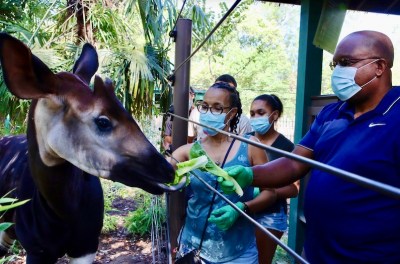 We have then created a population of zookapi, animals that almost surely could no longer be returned to the Ituri forests. Meanwhile, some zoos go so far as to domesticate their okapi(s) to some degree, treating them (and zebras as well) as like horses, at least to the point of allowing some visitors to the zoo to feed or stroke the animals. From the Facebook page of the Sacramento (CA) Zoo, feeding an okapi: