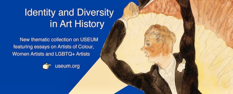 The USEUM site. #1 came to me not directly from LACMA, but via the USEUM page for the painting. USEUM began as Foteini Valeonti’s Ph.D. project Making art accessible with crowdsourcing at University College London; the “online encyclopedia” (of about 80,000 art works) is organized into a number of thematic collections, among them Identity and Diversity in Art History. The logo and description (by curator Liam Otero) for this collection: