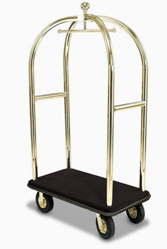 — p. 21, on the hotel luggage cart the bellhop / porter is pushing. This would appear to be a Birdcage® cart by Forbes Industries (manufacturer of tables and mobile carts for the hospitality industry), similar to this one: