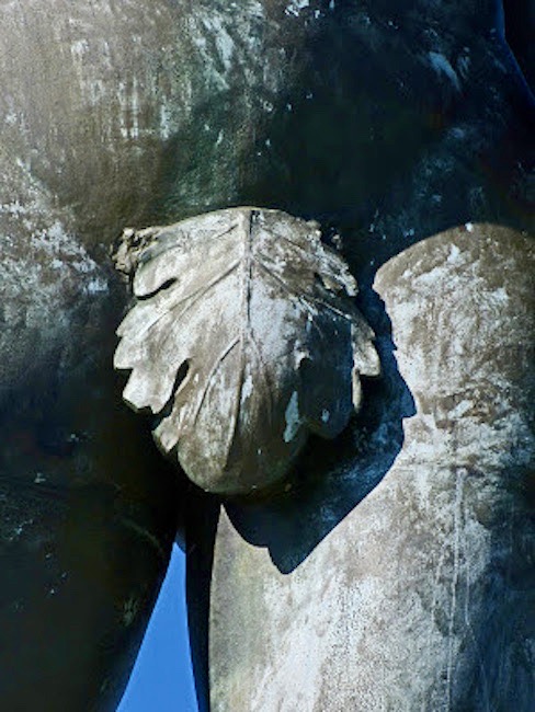 Though a nude male statue in such a public place is most unlikely in the prudish US, this one instead flaunts a huge genital package masked (but scarcely concealed) by an enormous fig leaf — America’s great codpiece tribute to the composer of our national anthem: