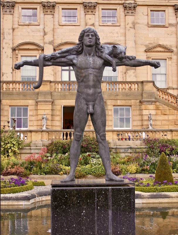The UK statue. By British sculptor Astrid Zydower in 1984, created for the fountain on the central terrace of Harewood House in Yorkshire, a 9-foot bronze of Orpheus carrying a leopard: