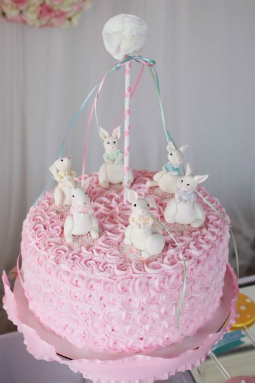 (#2) Rabbits — a carnal May Day bonus here — around the maypole on a pink cake