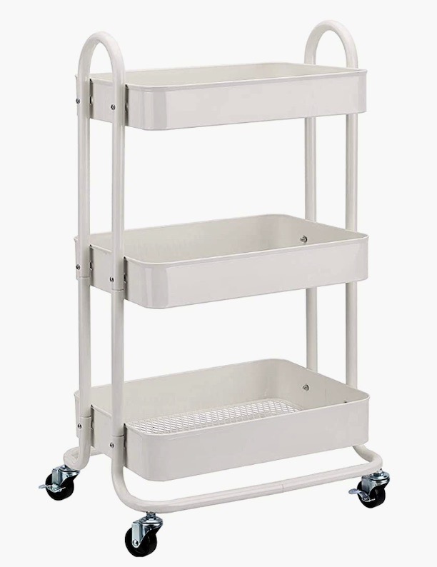 The New Thing: The Amazon Basics 3-tier metal rolling utility or kitchen cart in white, 13.35″ x 17″ x 31″: