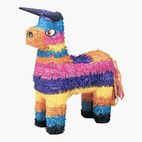 (#5) Fiesta bull piñata from the Oriental Trading Co.noun piñata: mainly North American (especially in Spanish-speaking communities) a decorated figure of an animal [AZ: made of paper, papier-mâché, pottery, or cloth] containing toys and candy that is suspended from a height and broken open by blindfolded children as part of a celebration.