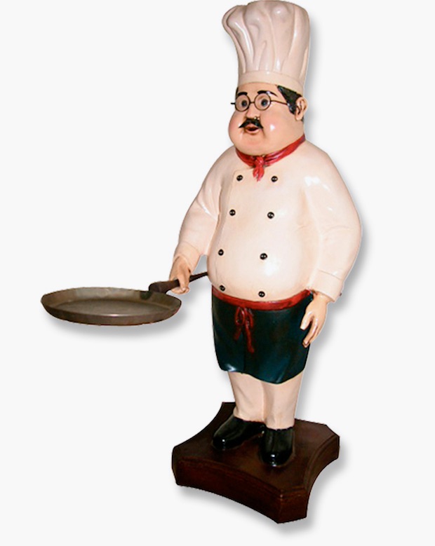 (#1) The extremely busy photo; yes, I will get to the statue (over 2 ft tall!) of a (French) chef with a skilletsalchicha sin preservativo ? !