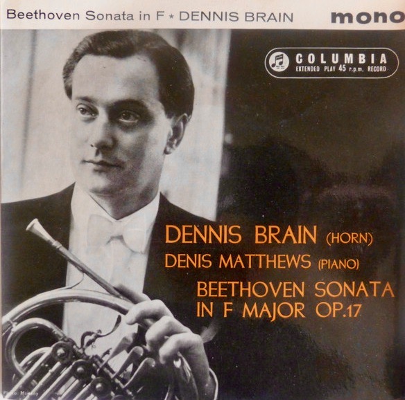 The masterpiece recording of the sonata with French horn was made in 1944 by the astounding Dennis Brain (with pianist Denis Matthews) on 78s, reissued by Columbia on a 45 rpm disc —