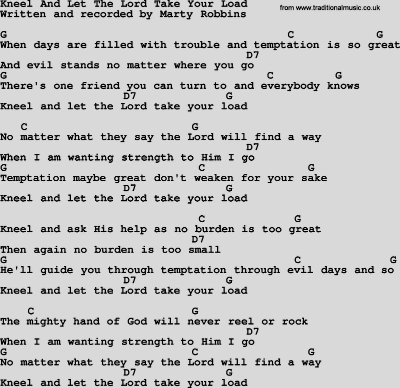 The song implores you to let the Lord relieve you of the burden of temptation to evil. The complete lyrics (with chord changes for the musically inclined):