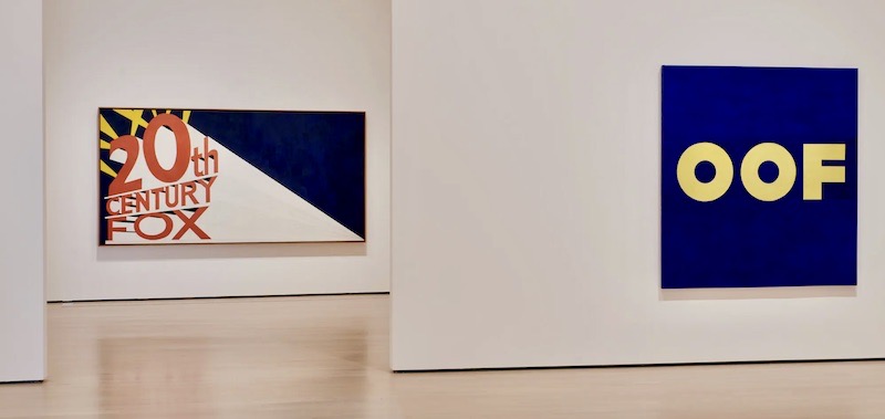 (#1) The opening galleries of “Ed Ruscha / Now Then” include “OOF” (1961) and “Large Trademark with Eight Spotlights” (1962).