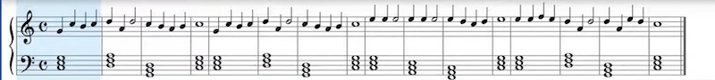 The melody of  Aura Lee, harmonized (so that you can see it’s not just 3-chord (I-IV-V) harmony):