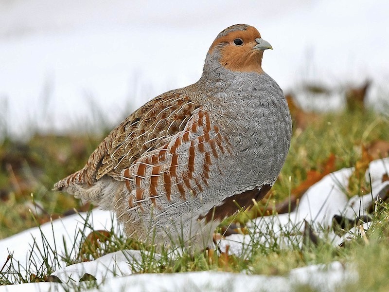 (#2) The grey partridge, Perdix perdix, a plump gamebird in the pheasant family; note the beak (photo: Cornell eBird files)