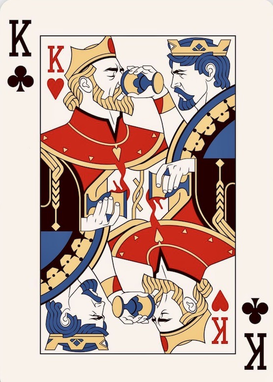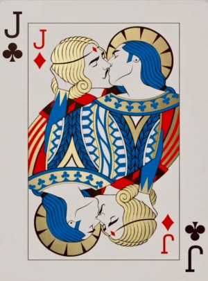 Encountered this morning on Pinterest, this remarkable artwork: a playing card showing the jack of hearts in the arms of the king of spades and holding hands with him: