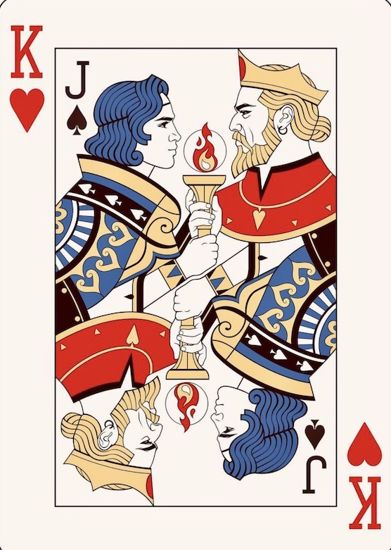 (#3) The jack of spades and the king of hearts, together clasping a torch