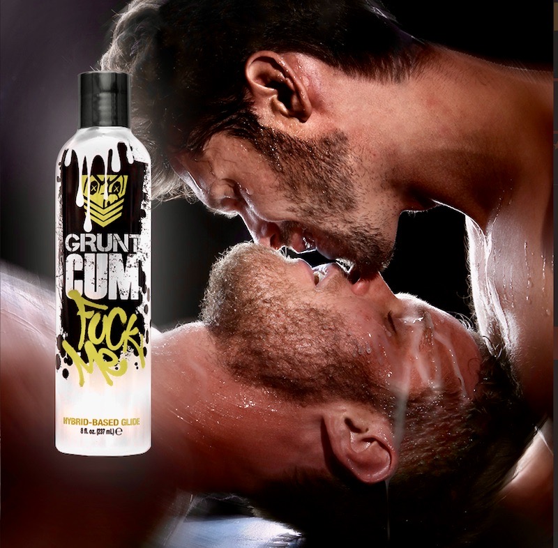This morning’s ad. The stuff is now marketed as Grunt CUM, with a jizz-dripping tube, and with two conspicuously sweaty guys about to kiss: