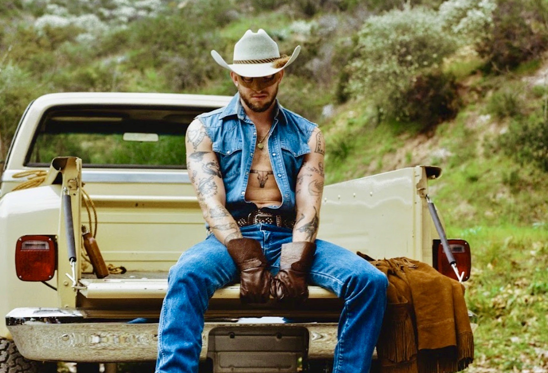 (#2) Peck on a pickup (photo: Ben Prince), playing with the high-masculinity stereotype of the cowboy (rough, dirty, sweaty, tough as nails — and, oh yes, also gay as fuck)Nelson, 90, first recorded a version of the famous tongue-in-cheek queer country anthem in 2006, while Peck, 36, previously covered the classic at the Red Headed Stranger’s 90th birthday party in Los Angeles last April.