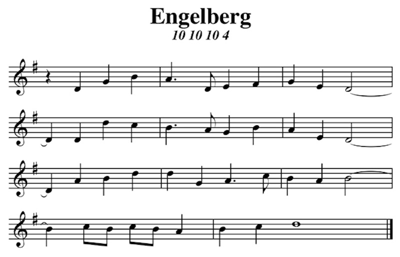 Charles V. Stanford composed ENGELBERG as a setting for William W. How’s “For All the Saints” [“For all the Saints who from their labours rest”]. The tune was published in the 1904 edition of Hymns Ancient and Modern with no less than six different musical settings. [now most often associated with Fred Pratt Green’s 1971 text “When in our music God is glorified”]