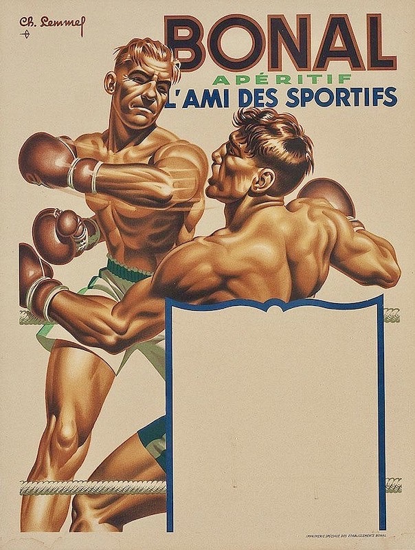 Two more Lemmels. First, a poster for the aperitif Bonal, advertised as being associated with highly masculine sports: