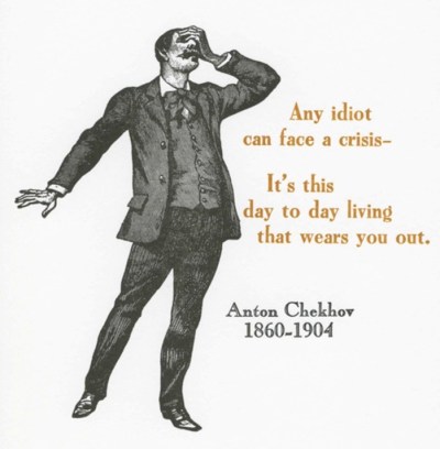 A character in a Hollywood film of the 1950’s casually drops this line: “Any idiot can face a crisis; it’s this day-to-day living that wears you out.” The screenplay was by Clifford Odets, America’s chief inheritor of the dramatic tradition of Anton Chekhov, and in that one line, he epitomized the lesson of his master.