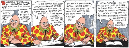 So I am suggesting that 6/30 be recognized as Ultimate Queen Day, especially celebrating men who are flamboyant (in any way) and those who are effeminate (in their presentation of themselves). Stereotypically, these two bundles of characteristics are manifested together, in the cultural type the queen (not to be confused with royalty, with the drag queen, with X queen used to label tastes or preferences of many kinds — imagine a white-cross queen, a man who prefers Swiss men as sexual partners, or a fan of Swiss things — or with various other uses of /kwin/).