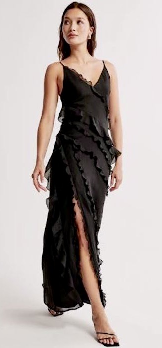(#2) The Abercrombie & Fitch Cascading Ruffle Maxi Dress, in black (also available in pink and blue)